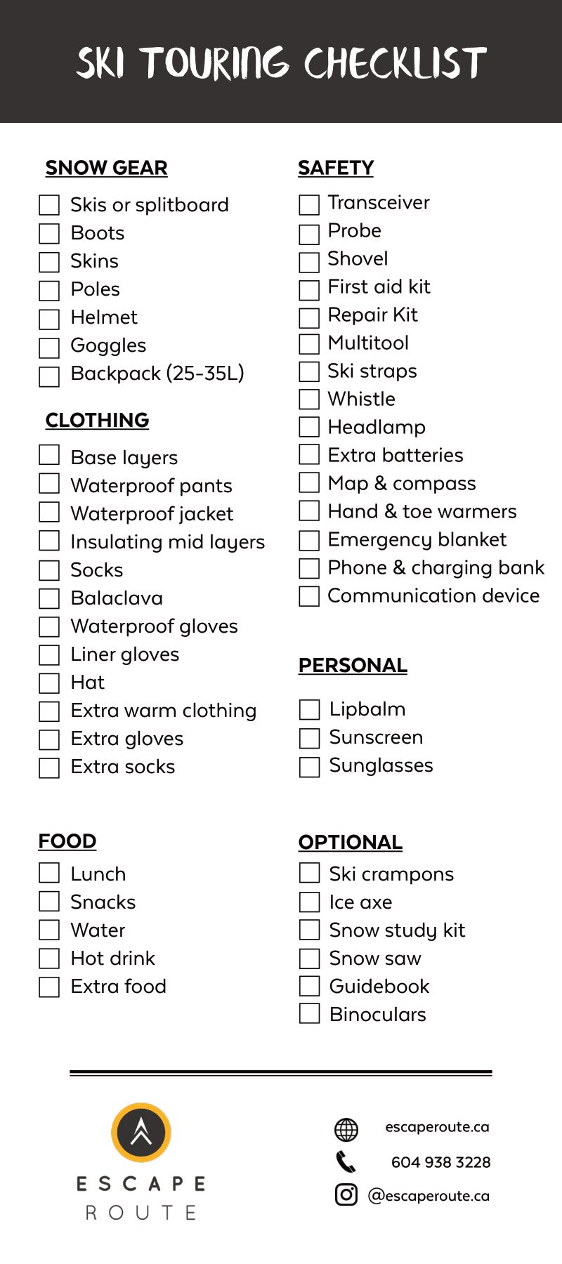 Ski Touring Checklist Handout